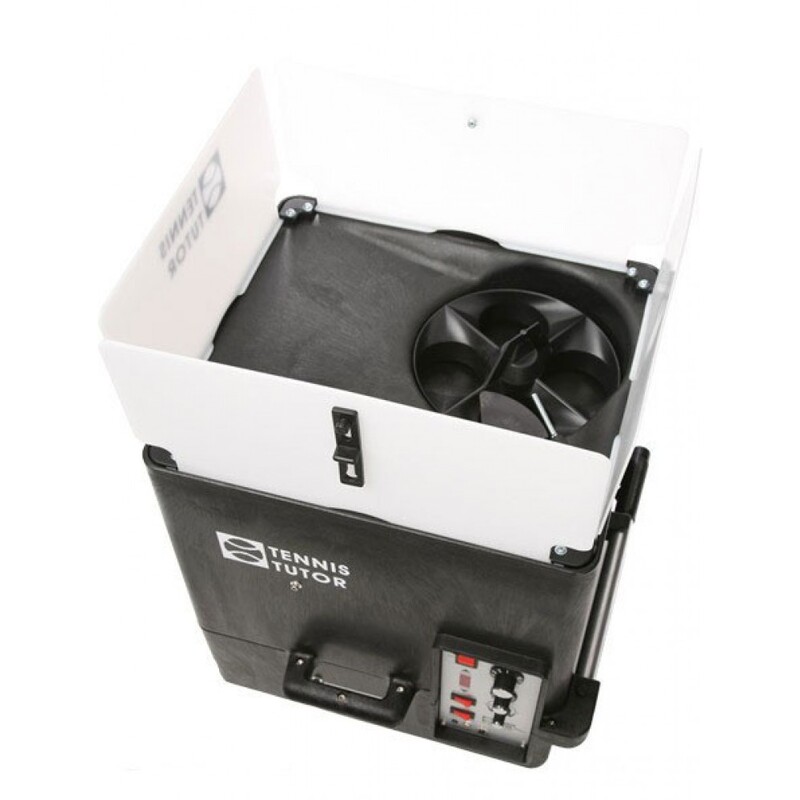 Tennis Tutor ® is a portable tennis training machine. Suitable for any type of court, as well as for professional athletes. The machine is intended for training from 4 to 6 h, with built-in “UnderSpin” and “TopSpin” options by simply turning the key. If you wish to train in “Flat” mode, place the key in the middle position of the panel. Automatic adjustment of the increase in the height of the thrown ball is available.