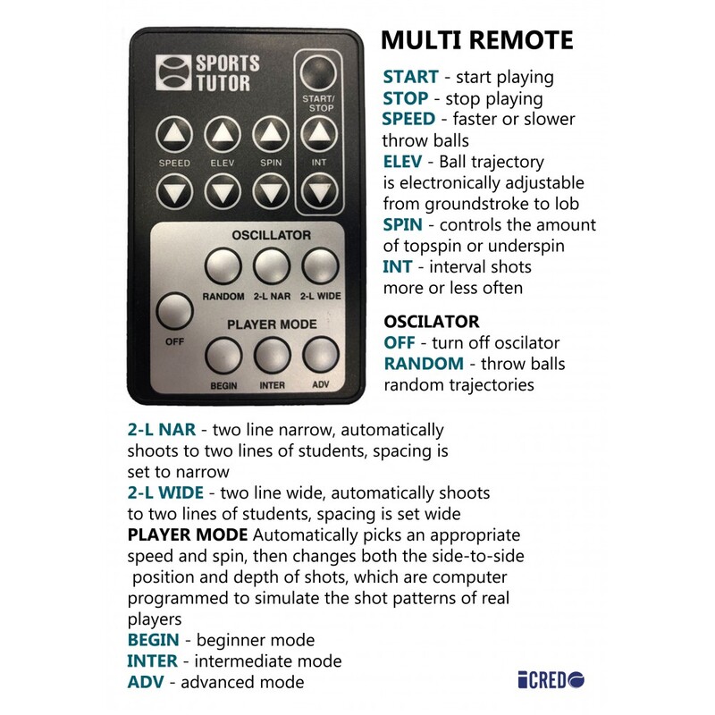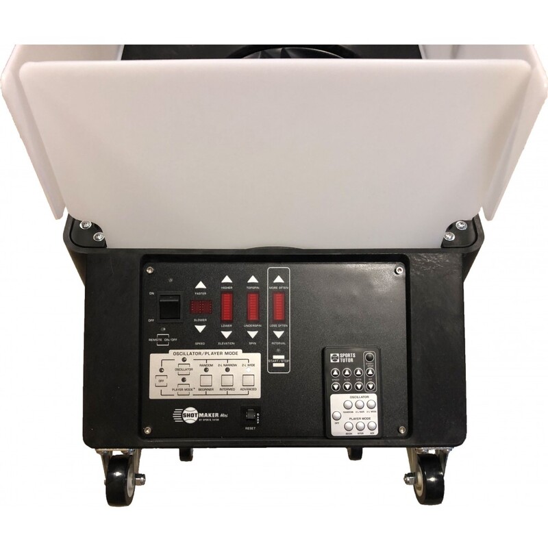 SHOTMAKER MINI Player Sports Tutor patented Player Mode™ simulates a real player – Automatically picks an appropriate speed and spin, then changes both the side-to-side position and depth of shots, which are computer programmed to simulate the shot patterns of real players at the Beginner – Intermediate – Advanced levels. 2-line oscillator feature – Shoots balls to two preset positions. This allows a player to practice alternating forehand and backhand shots, and helps an instructor work with two lines of students in a group lesson. There are two 2-line settings: Narrow & Wide.